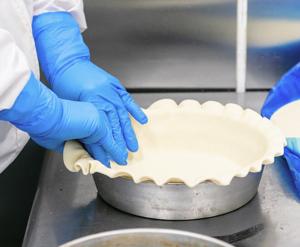 ハンドメイドの温かさと、機械の正確さ。その両方を活かした独自のハイブリッド製法で、私たちのキッシュは生まれます。人の手を活かす工程をあえて残すことで、手づくりならではのぬくもりとやさしさを感じる仕上がりに。