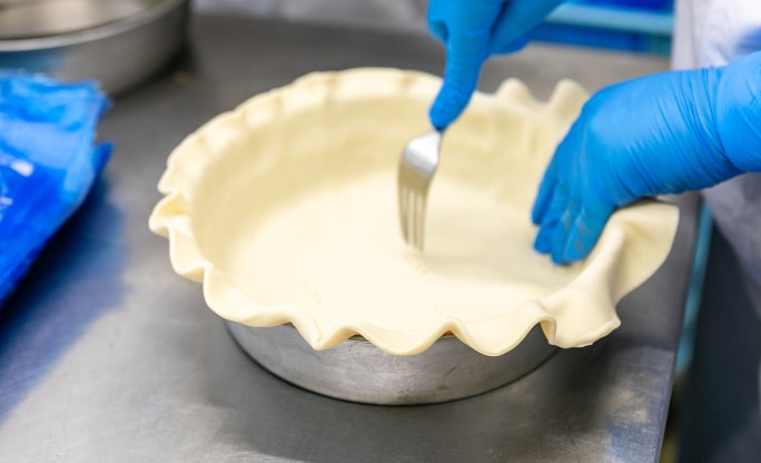 キッシュ製造では、その日に割り当てられたポジションで作業を行います。自分が携わった商品が店頭に並び、お客さまが召し上がっている様子を見ると、多くの人に貢献できている実感が湧き、モチベーションも上がります。